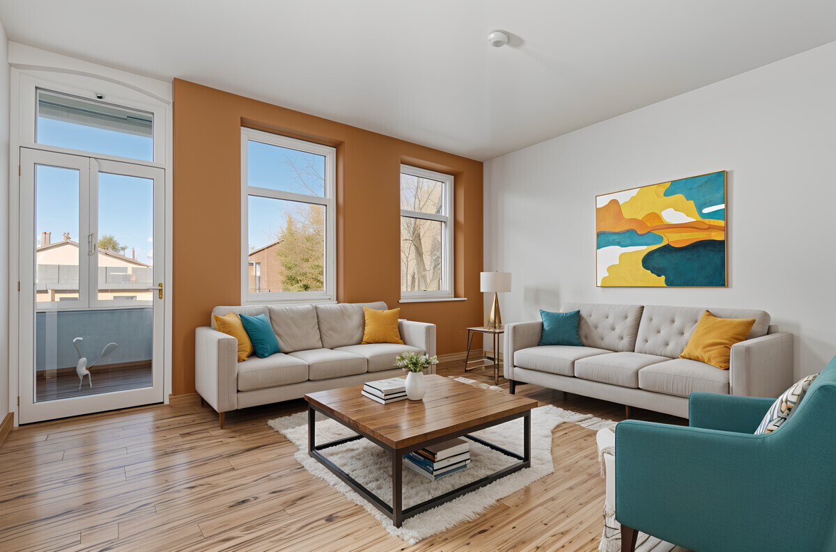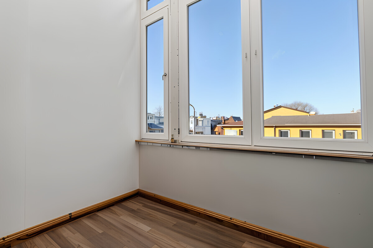 Im gesamten Gebäude sind doppelt verglaste Holzfenster verbaut, die den historischen Charakter unterstreichen und für eine gute Wärmedämmung sorgen.