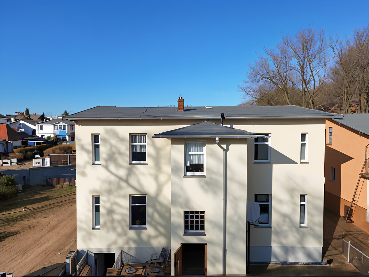 Die historische Bädervilla wurde in den vergangenen Jahren umfassend modernisiert und vereint heute den Charme der ursprünglichen Architektur mit zeitgemäßer technischer Ausstattung.Das Dach wurde im Jahr 2005 neu eingedeckt und bildet eine solide Grundlage für die langfristige Nutzung.